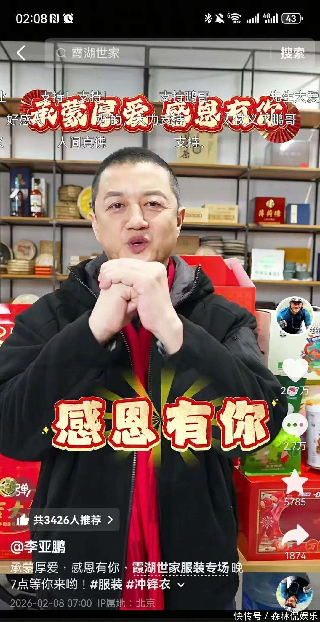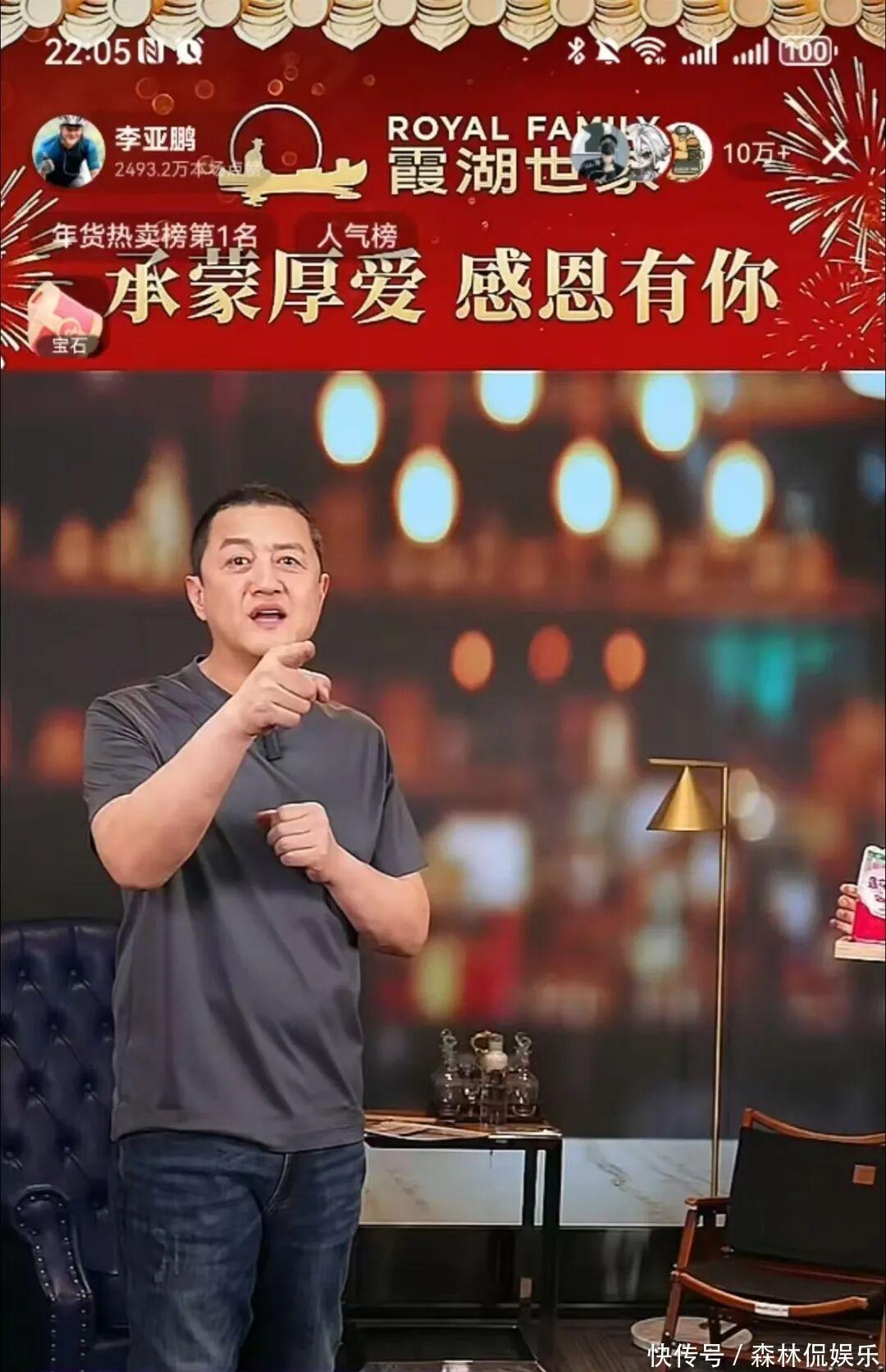 另据极目新闻此前报道,第三方平台数据显示,最近30天,李亚鹏共直播13场,上架商品874个,直播销量超百万。场均销售额5000万元至7500万元。最近10天内,3场销售破亿,其中1月30日销售额最高,超过1.8亿元。2月7日的达人榜中,李亚鹏超过与辉同行,排名第1。另外,李亚鹏的短视频账号已经从600万粉丝涨到超过1100万,一个月涨粉500万。现代快报/现代 综合 封面新闻、极目新闻、每日经济新闻等